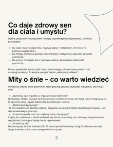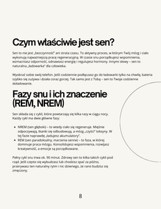 Masz problemy z zasypianiem, budzisz się niewyspany i brakuje Ci energii w ciągu dnia? Ten e-book to praktyczny przewodnik, który pomoże Ci poprawić jakość snu i cieszyć się większą produktywnością oraz lepszym samopoczuciem.